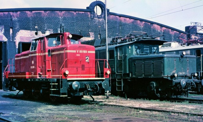 Vor dem Schuppen in Mannheim wartet 1966 die V 60 169 zusammen mit der E 94 192. copyright: Wolfgang Bügel / Slg. Eisenbahnstiftung