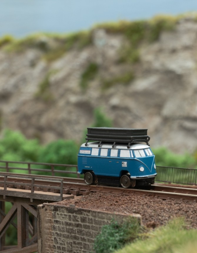Kleinste fahrfähige Lok: VW Bulli Daisine - Länge nur 21,7 mm